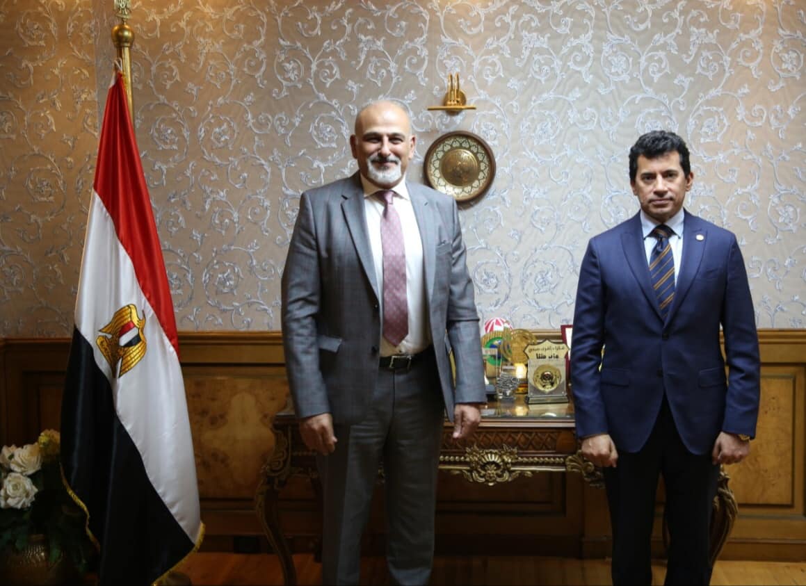 التقي الدكتور أشرف صبحي وزير الشباب والرياضة المصري بالفنان السوري جمال سليمان، لبحث إطلاق مبادرة للحفاظ على اللغة العربية والهوية الوطنية، والثقافة المصرية في نفوس الأجيال الجديدة، وذلك بديوان عام الوزارة، بحضور الدكتورة عزة الدري رئيس الإدارة المركزية للطلائع بوزارة الشباب والرياضة.