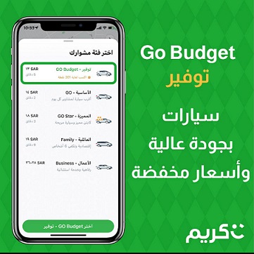 أعلنت كريم السعودية عن إطلاق خدمة Go Budget والتي تتيح للزبائن امكانية توفير 10% على قيمة مشاوريهم اليومية. وبادرت كريم إلى إطلاق خدمة Go Budget التزاماً منها بتوفير خدمات نقل تسهم في تسهيل حياة الأفراد، ولتوفر لهم الخيارات التي تناسب احتياجاتهم المتنوعة، حيث اتخذت قرارها بإطلاق هذه الفئة بعد دراسة أجرتها لقياس حاجة الزبائن لمثل هذه الخدمة ومدى توفر المركبات المتاحة بهذه المواصفات لخدمة الزبائن، حيث أظهرت الدراسة ازدياد طلب الزبائن على فئة سيارات توفر معايير الجودة والسلامة وأكثر توفيراً على مشاويرهم اليومية.