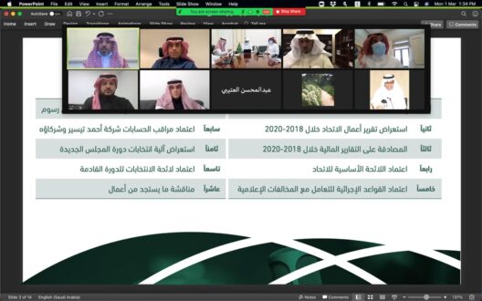 عقد الإتحاد السعودي للاعلام الرياضي جمعيته العمومية الأولى للاتحاد السعودي “عن بُعد” بحضور أعضاء مجلس إدارة الاتحاد وأكثر من 125 عضواً من الأعضاء العاملين.