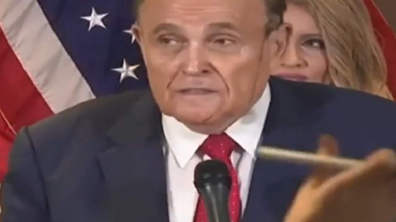 شهد المؤتمر الصحفي الذى عقده محامي الرئيس الأمريكي المنتهية ولايته، دونالد ترامب، رودي جولياني، ظهور خط أسود على وجهه.