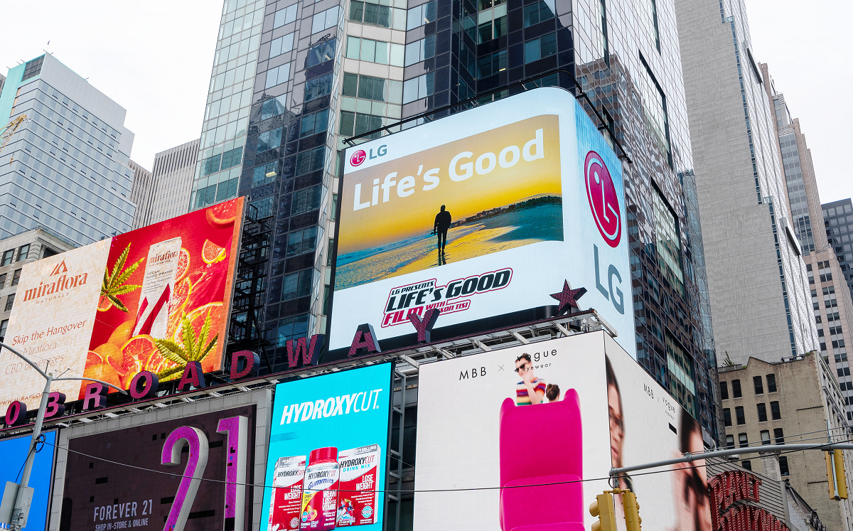 عرضت إل جي المقطع الدعائي لفيلم (Life’s Good)على لوحاتها الإعلانية الرقمية في تايمز سكوير بمدينة نيويورك وميدان بيكاديلي سيركز في لندن. كما سيُعرض الفيلم القصير (Life’s Good) خلال الأسابيع المقبلة في مهرجانات مختارة للأفلام. وهو يعرض حالياً على قناة إل جي غلوبال في منصة يوتيوب.
