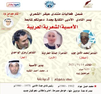أدبي جدة ينظم أمسية شعرية عربية مساء الثلاثاء ومن خلال منصة “زووم”