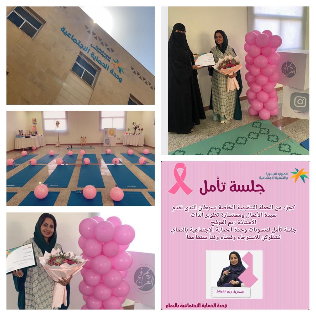 نفذت وحدة الحماية الاجتماعية بالدمام أمس الأحد الموافق ٢٠٢١/١٠/٢٤ م جلسة تأمل و استرخاء لمنسوباتها، قامت بتقديم الجلسة المدربة مستشارة تطوير الذات وسيدة الأعمال الأستاذة / ريم بنت إبراهيم العرفج.