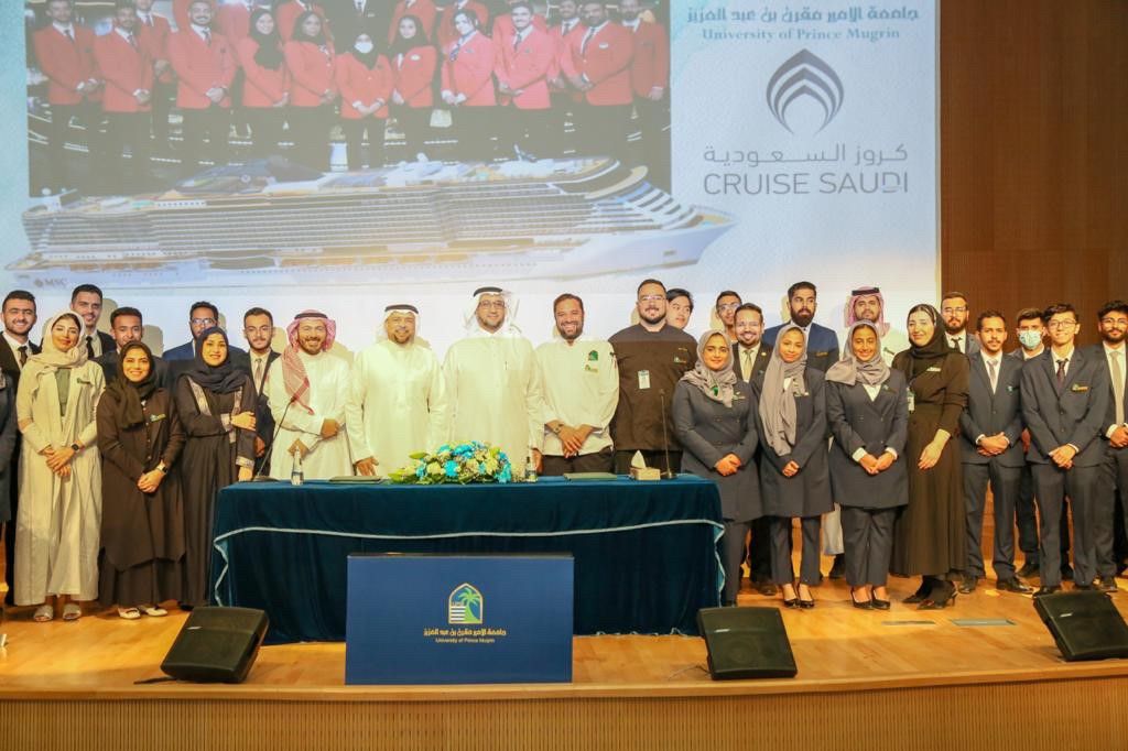 وقعت «كروز السعودية Cruise Saudi» إحدى الشركات المملوكة بالكامل لصندوق الاستثمارات العامة، والمسؤولة عن تطوير قطاع الرحلات البحرية في المملكة، اتفاقية تعاون مع «جامعة الأمير مقرن بن عبد العزيز»، مؤخراً؛ لتدريب الكوادر الوطنية في المجال السياحي، وتوفير قوة عاملة محلية متميّزة وذات كفاءة عالية، بالإضافة إلى تعزيز التعاون المشترك بينها لدعم وتطوير قطاع السياحة في المملكة، وتعظيم دوره الاقتصادي المنشود كأحد المحركات الرئيسية الداعمة لمسيرة التنمية الشاملة في مملكتنا الغالية.