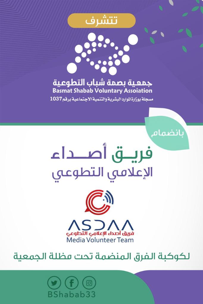 وباركت الجمعية ورحبت بانضمام الفريق للجمعية ضمن الفرق المعتمده التي تعمل تحت مظله بصمة شباب مسجلة بوزارة الموارد البشرية والتنمية الإجتماعية ،وأكدوا أن العمل التطوعي أساس في بناء الوطن ونشر التماسك الإجتماعي بين أفراد المجتمع ومرتبط بكل معاني الخير والعمل الصالح نظراً لما لمسته الجمعية من رغبة صادقة للفريق في خدمة الجمعية وتنفيذ الخطط والبرامج، والمبادرات النوعية التي تساهم في تطوير وتحسين الخدمات وبهدف خدمة المجتمع في كل المجالات الإعلامية والنواحي الإجتماعية وإبراز الجانب الإيجابي للتطوع الإعلامي والمساهمة بأهمية نشر ثقافة العمل التطوعي تم توقيع هذه الاتفاقية