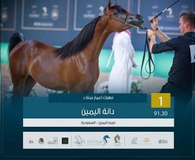 المركز الأول: دانة اليمين (فاليدورو x شموخ العناية) مربط اليمين- السعودية.
